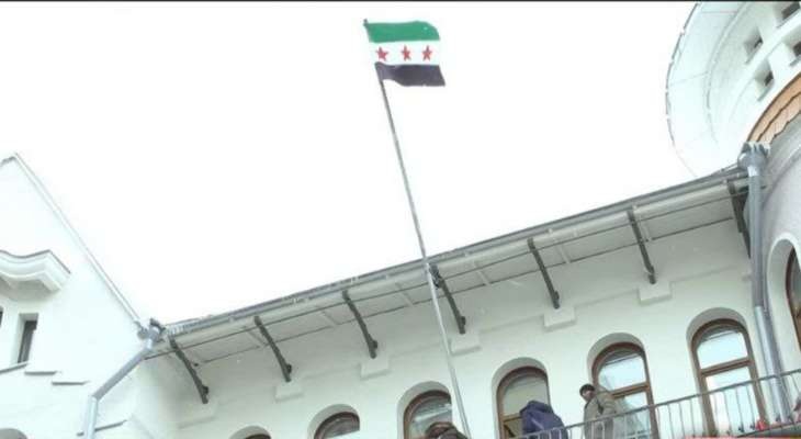 رفع علم المعارضة السورية على مبنى السفارة السورية في موسكو