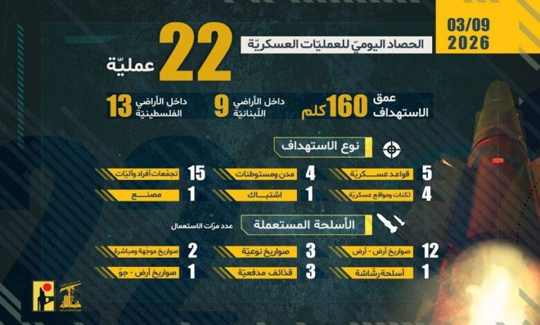الحصاد اليومي لعمليات المقاومة الإسلامية بتاريخ 09-03-2026