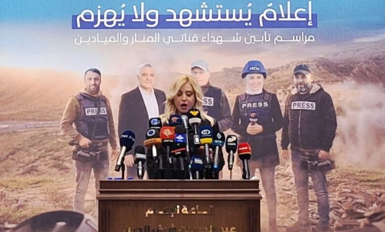 ونتمنى الشفاء العاجل للإعلاميين الجرحى. تحياتنا الحارة لكم جميعًا وشكرًا للإعلاميين الثابتين على رسالتهم في التبيين، والمستمرّين رغم الصعاب لا سيّما في قناتَي الميادين والمنار وإذاعة النور وجميع القنوات والإذاعات والمنصّات الرقمية، اللبنانيين وغير اللبنانيين.