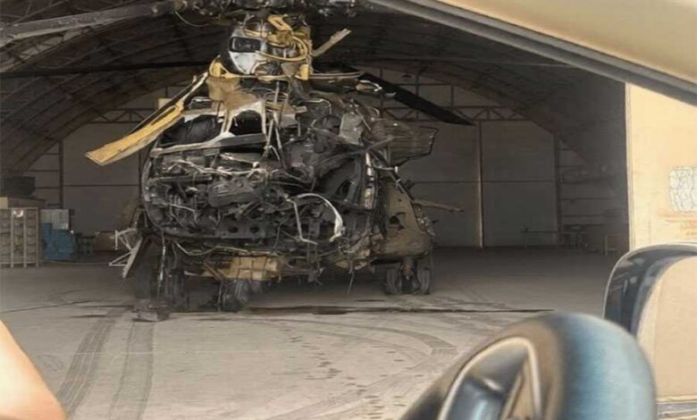 وتُظهر صور نُشرت من داخل حظيرة الطائرات أو بالقرب من المروحية أضرارًا بالغة في الجزء الأمامي من قمرة القيادة وأحد المراوح الرئيسية، ما قد يُعطّل قدرة المروحية على الطيران.