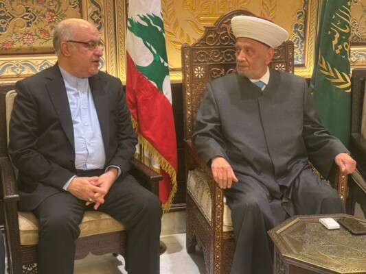 استقبل مفتي الجمهورية اللبنانية الشيخ عبد اللطيف دريان في دار الفتوى سفير إيران مجتبى أماني همداني في زيارة وداعية وجرى البحث في الشؤون الإسلامية والوطنية.